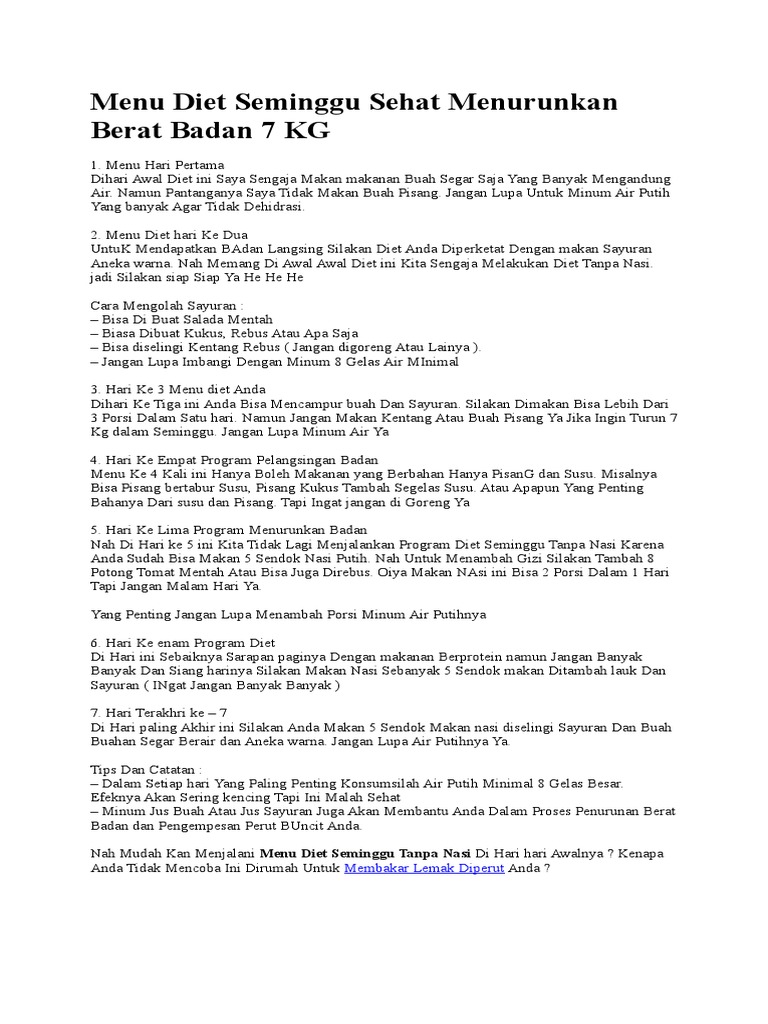 Menu Diet Seminggu Sehat Menurunkan Berat Badan 7 Kg Membakar Lemak Diperut